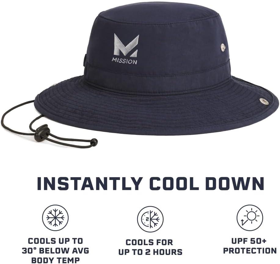 imageMISSION Cooling Bucket Hat  Unisex WideBrim Hat for Men ampamp Women  Lightweight Foldable ampamp Durable  Cools Up to 2 HoursNavy